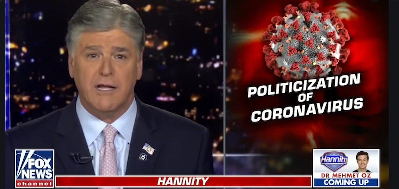 Fox News this week claiming Trump has saved us from coronavirus is just as dangerous as Fox News last week claiming the pandemic is a hoax. Both send the irresponsible message to viewers that the unfolding crisis is not a real threat today. And both messages reinforce a parallel universe view of the world that divides the country and makes a common conversation in times of crisis impossible to have.