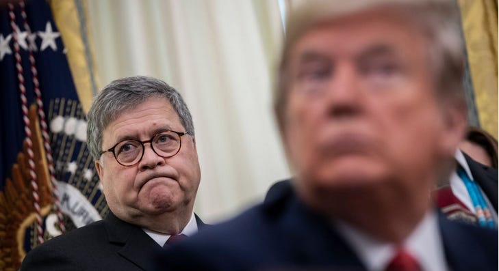 That's how the New York Times in March 2019 famously described Attorney General William Barr's supposed exoneration of Trump following Barr's reading of Robert Mueller's Russia investigation. Refusing to release the sprawling report, Barr instead put out a thin, four-page press release where he brazenly lied about Mueller's contents, and claimed Trump was in the clear.