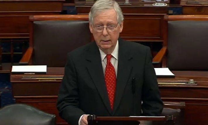 And yet…..after McConnell crafted the Senate trial cover-up rules in secret and then had to back track slightly when even some Republicans began privately complaining about the lack of witnesses, the New York Times marveled at McConnell's "mastery" and how "astute" he was in dealing with impeachment.