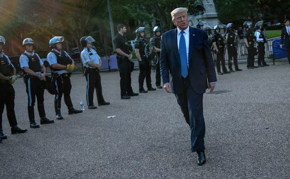 In the wake of George Floyd's murder by the Minneapolis police, Trump returned to his hateful themes, referring to protesters as “thugs." On Twitter he warned, “Any difficulty and we will assume control, but when the looting starts, the shooting starts,” in a tweet that was so inappropriate it was flagged by Twitter for “glorifying violence.”