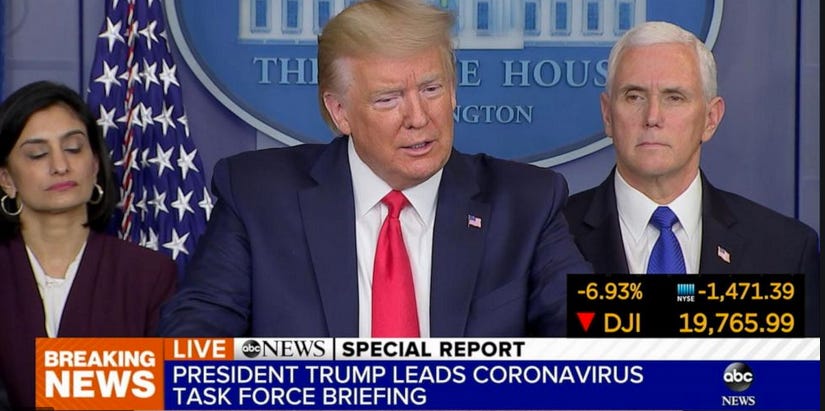 The endless Trump coverage today, often featuring two-hour briefings each day, is all being done voluntarily. TV networks in the United States are under no obligation to carry the president live when he makes appearances or addresses the press. Specifically for primetime, the White House typically lets the networks know the president wants to address the nation and then the networks inform the White House whether they'll be willing to carry the address, which they almost always do. It's true, the pandemic briefings usually don't air in primetime so the protocol is different. But the networks, and the cable news channels, could absolutely not broadcast the briefings live, and that in no way would that be unusual.