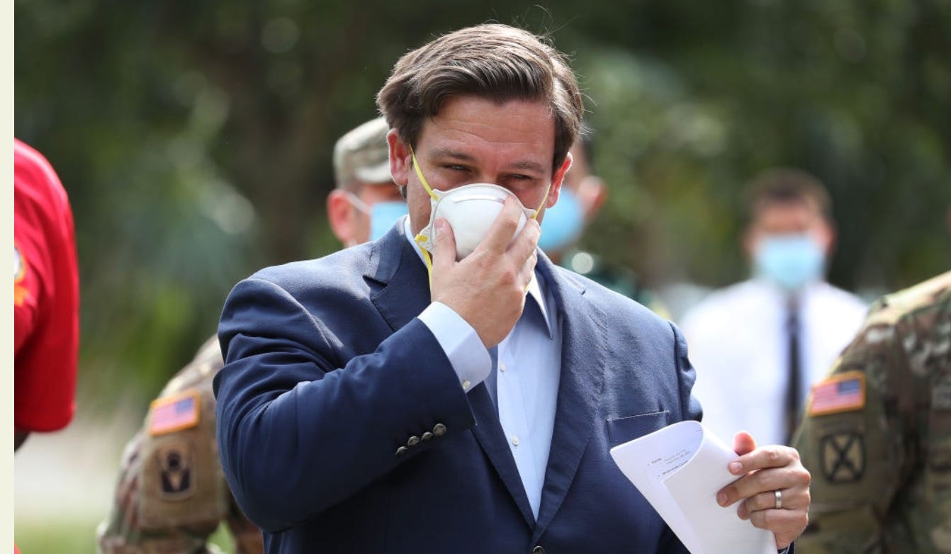 Question: Does the Beltway press care about the state’s drastic Covid U-turn? This spring, journalists lionized DeSantis’ supposed virus leadership— it was Politico that announced, “How Ron DeSantis Won the Pandemic.” This, after 30,000 Floridians had already died from the virus.