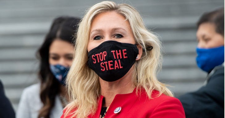 • QAnon loyalist and Republican Rep. Marjorie Taylor Greene aggressively confronted Rep. Alexandria Ocasio-Cortez (D-NY) in the halls of Congress, and falsely accused her of supporting “terrorists.”