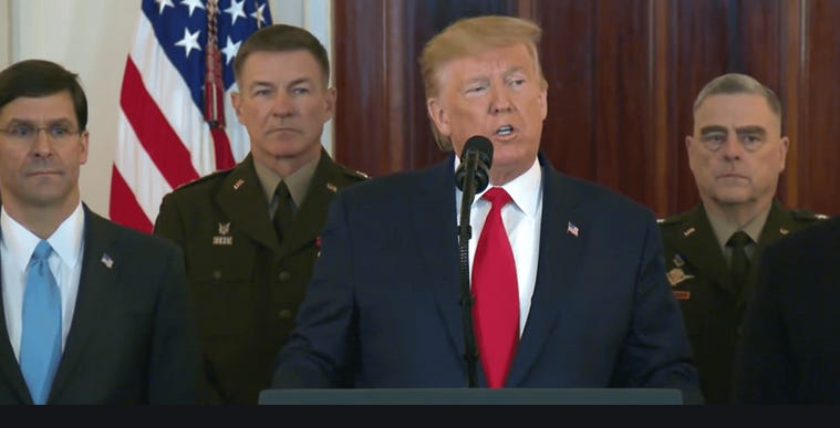 Instead we get spectacles like the one that followed Trump's completely strange and bewildering Iran speech, where there's a collective decision by the press to play dumb on a massive scale and to pretend that Trump gave a serious speech that laid out a clear policy and that there was nothing odd about his speech patters or behavior.