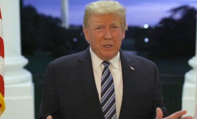 Keep in mind that just three days ago Trump tweeted from Walter Reed National Military Medical Center, “OUR GREAT USA WANTS & NEEDS STIMULUS. WORK TOGETHER AND GET IT DONE.” As is so often the case, none of this makes sense, in terms of denying economic comfort to millions of Americans.