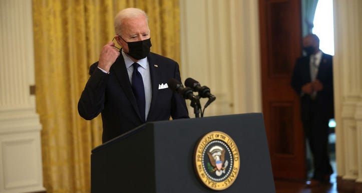 Instead, the Biden mask coverage seems to be driven by a silly gotcha premise: The CDC says fully vaccinated people don't have to wear masks, so why's he wearing mask? It's like when reporters kept asking why Biden was flying to Delaware to be with his family on the weekends at a time when the CDC was urging people to avoid airplane travel. (Spoiler: Biden doesn't have to pass through a crowded airport while flying on Air Force One.)