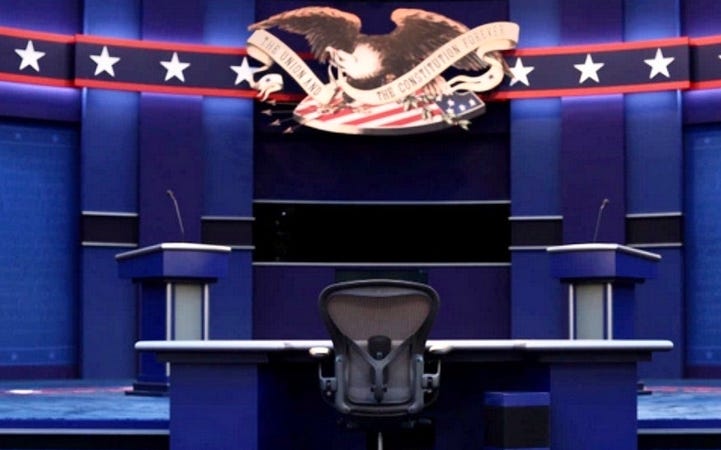 The plug is thankfully being pulled on the 2020 presidential debates. For now at least, it appears that next week's forum won't take place with Trump present, since he went on Fox News Business and unleashed a temper tantrum, announcing he wouldn't show up if the debate were done remotely. It's a change organizers made in order to protect participants, given the GOP Covid-19 outbreak that has gripped the White House. (There's always a chance Trump will change his mind before next week.)